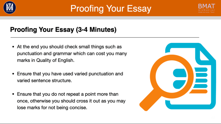 This is the fourth stage of the BMAT essay but the most important as you need to ensure you have secured that “A” for Grammar and Communication.