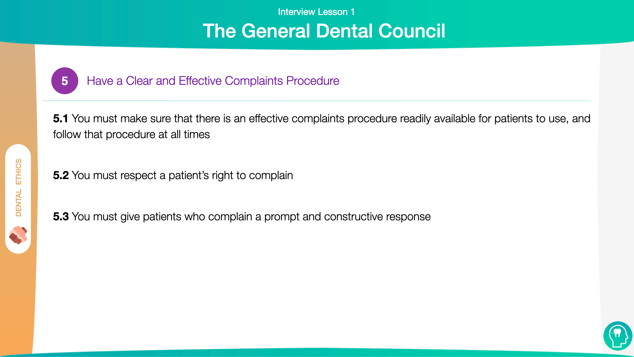 The General Dental Council publishes 9 principles by which all dentists should act. This tutorial will introduce you to the idea of the GDC before going on to explore each of the 9 principles in depth.