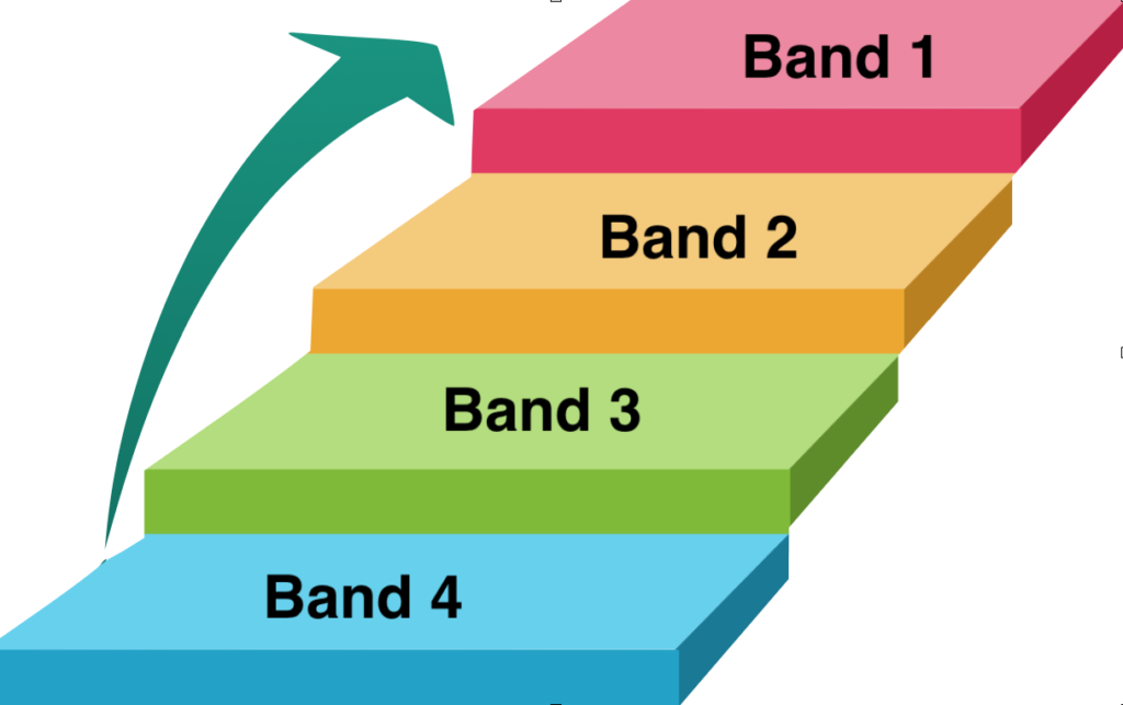 This means that you will receive a total score between 1200 and 2700 as well as a band 1-4 as your overall test result.