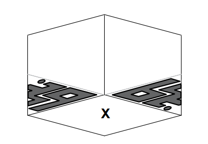 The diagram below shows two perpendicular mirrors with a reflected tile on the faces of both mirrors.