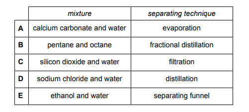 Ethanol and water cannot be separated by a separating funnel. This is as, ethanol is soluble in water, as it forms hydrogen bonds with water molecules. Hence, distillation can separate them.